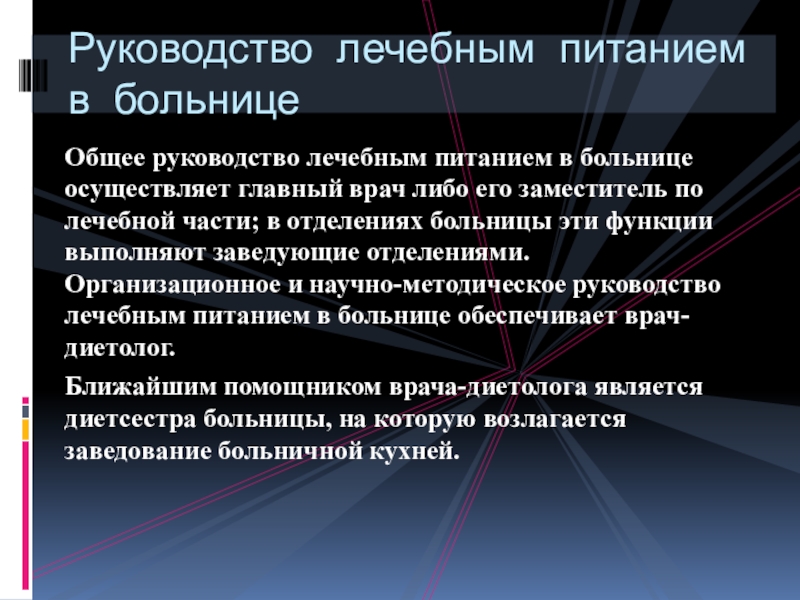 Руководство лечебным питанием в больнице
