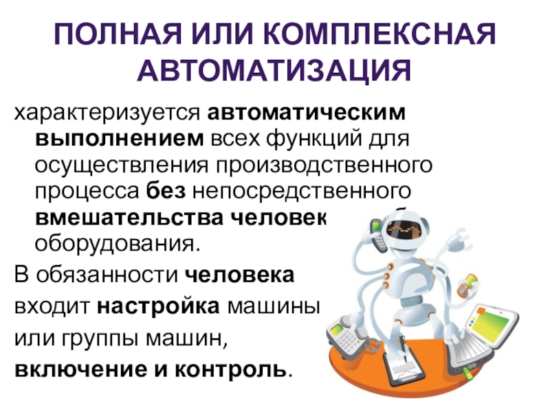 Слайд 29Полная или комплексная автоматизация