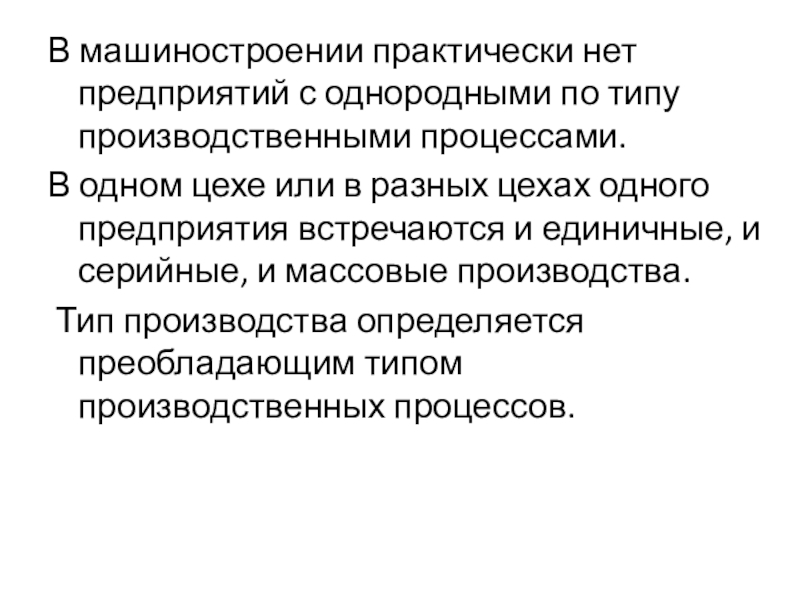 Слайд 36В машиностроении практически нет предприятий с однородными по типу производственными процессами.