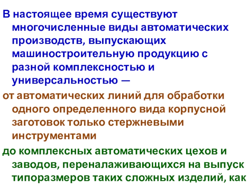 Слайд 25В настоящее время существуют многочисленные виды автоматических производств, выпускающих машиностроительную продукцию