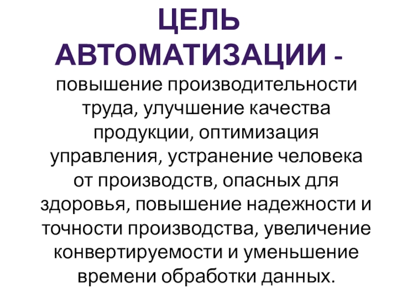 Слайд 14Цель автоматизации -