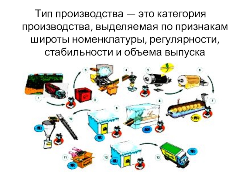 Слайд 31Тип производства — это категория производства, выделяемая по признакам широты номенклатуры,
