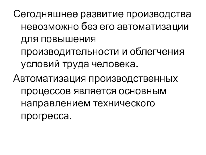 Слайд 22Сегодняшнее развитие производства невозможно без его автоматизации для повышения производительности и