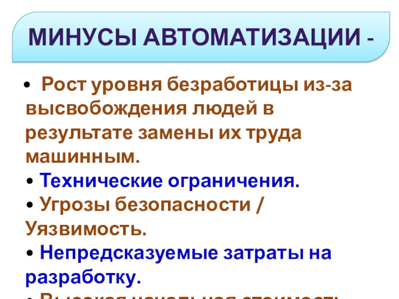 Слайд 16Минусы автоматизации -