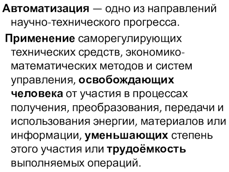 Слайд 11Автоматизация — одно из направлений научно-технического прогресса.