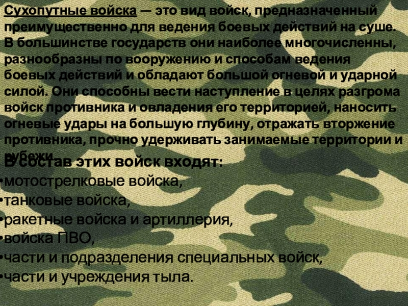 В состав этих войск входят: