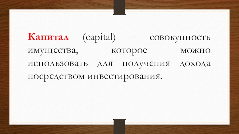 Слайд 4Капитал (capital) – совокупность имущества, которое можно использовать для получения дохода