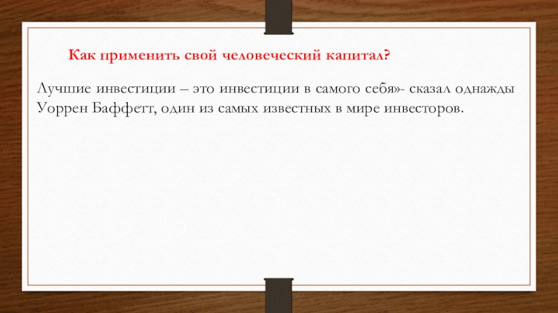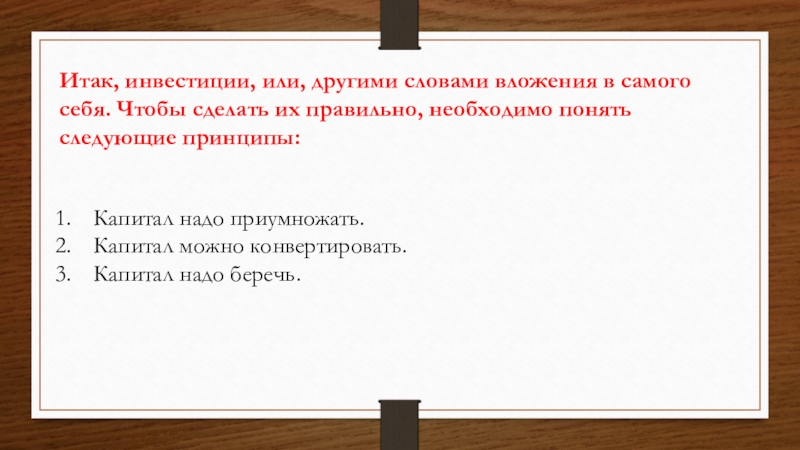 Слайд 8Итак, инвестиции, или, другими словами вложения в самого себя. Чтобы сделать