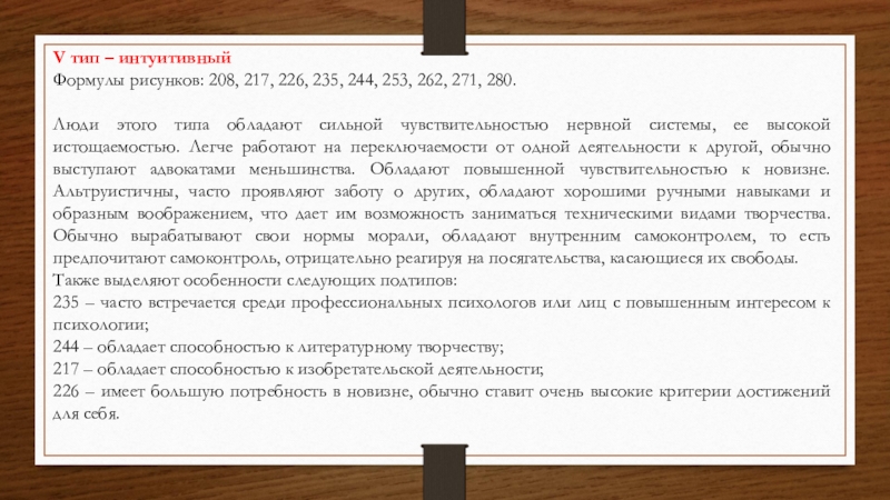 Эти трехзначные цифры составляют так называемую формулу рисунка, по которой происходит отнесение рисующих к соответствующим типам и подтипам.