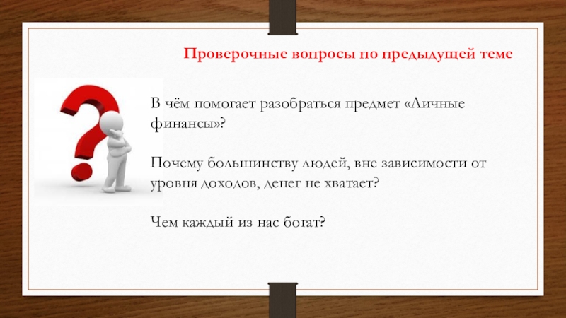 Слайд 2 Проверочные вопросы по предыдущей теме