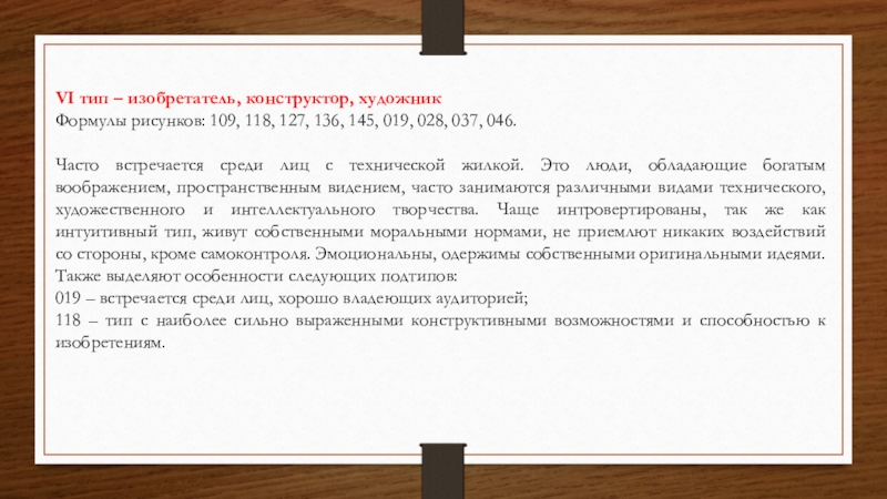Слайд 18VI тип – изобретатель, конструктор, художник