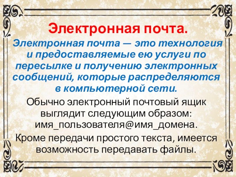 Электронная почта — это технология и предоставляемые ею услуги по