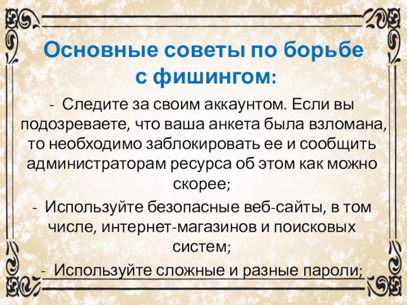 Слайд 25Основные советы по борьбе