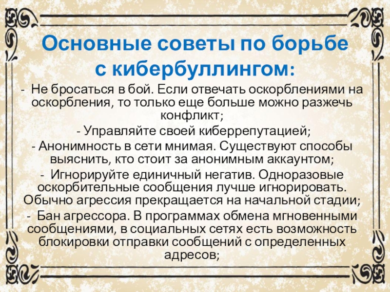 Слайд 20Основные советы по борьбе