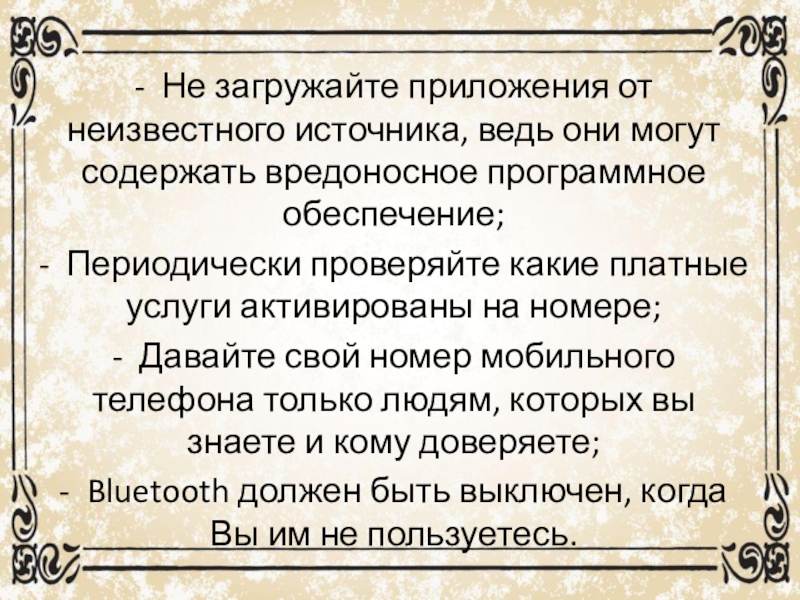 Слайд 23- Не загружайте приложения от неизвестного источника, ведь они могут содержать