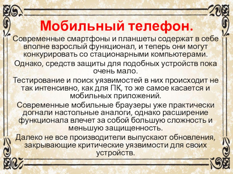 Тестирование и поиск уязвимостей в них происходит не так интенсивно, как для ПК, то же самое касается и мобильных приложений.