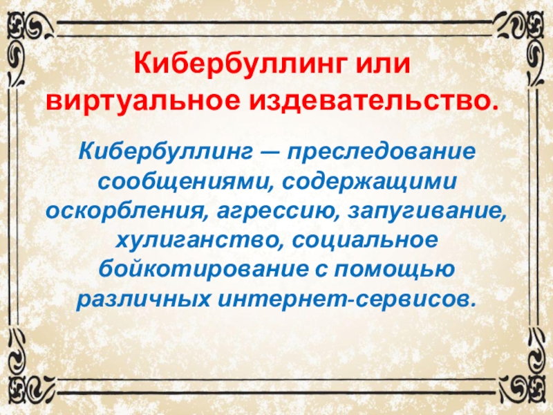 Кибербуллинг — преследование сообщениями, содержащими оскорбления, агрессию, запугивание,
