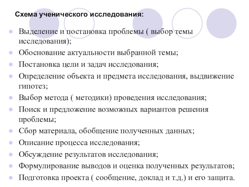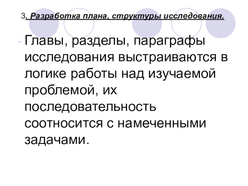 работы над изучаемой проблемой, их последовательность соотносится с намеченными задачами.