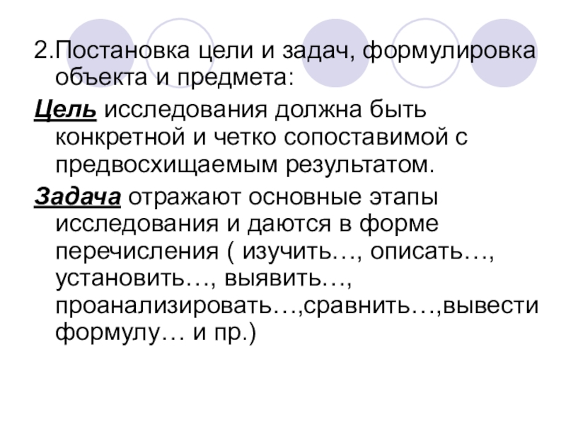 Слайд 202.Постановка цели и задач, формулировка объекта и предмета: