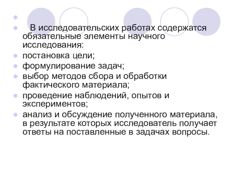 В исследовательских работах содержатся обязательные элементы научного исследования: