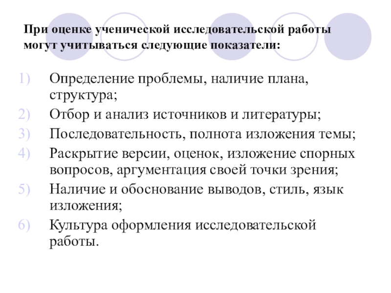 Слайд 27При оценке ученической исследовательской работы могут учитываться следующие показатели: