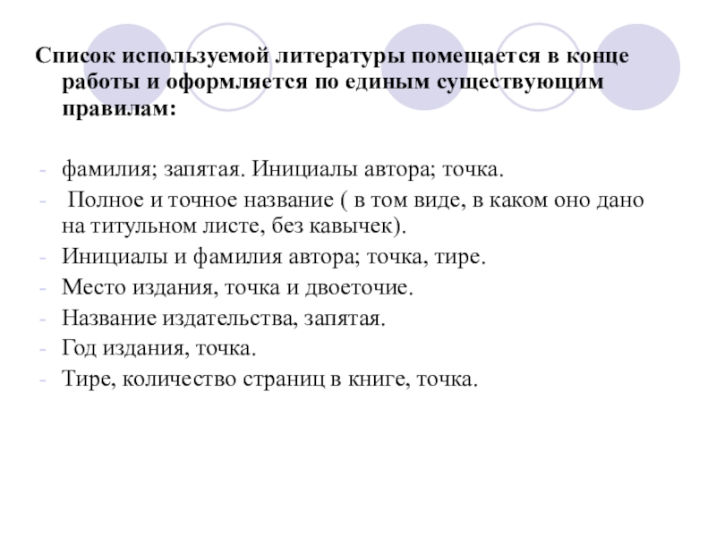 Слайд 11Список используемой литературы помещается в конце работы и оформляется по единым
