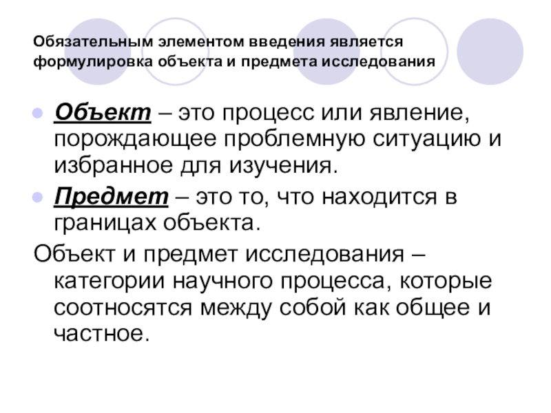 Слайд 21Обязательным элементом введения является формулировка объекта и предмета исследования