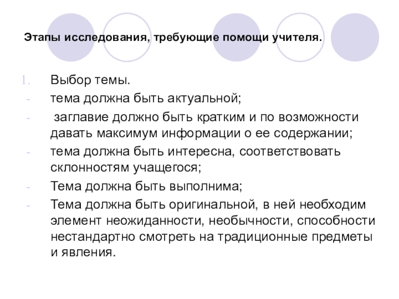 тема должна быть интересна, соответствовать склонностям учащегося;