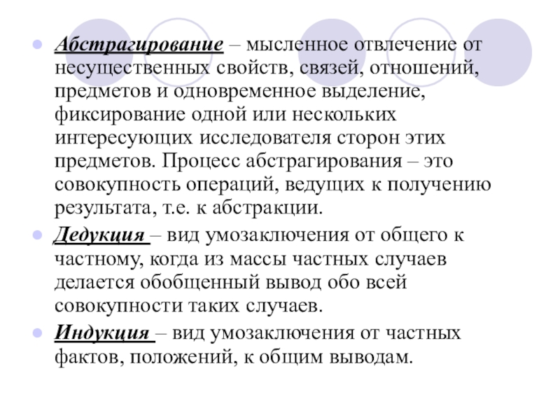 Слайд 25Абстрагирование – мысленное отвлечение от несущественных свойств, связей, отношений, предметов и