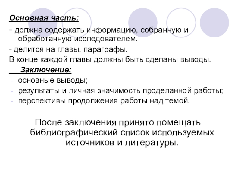 После заключения принято помещать библиографический список используемых источников и литературы.