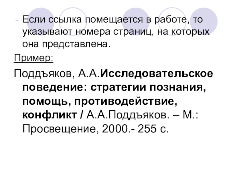 Слайд 12Если ссылка помещается в работе, то указывают номера страниц, на которых