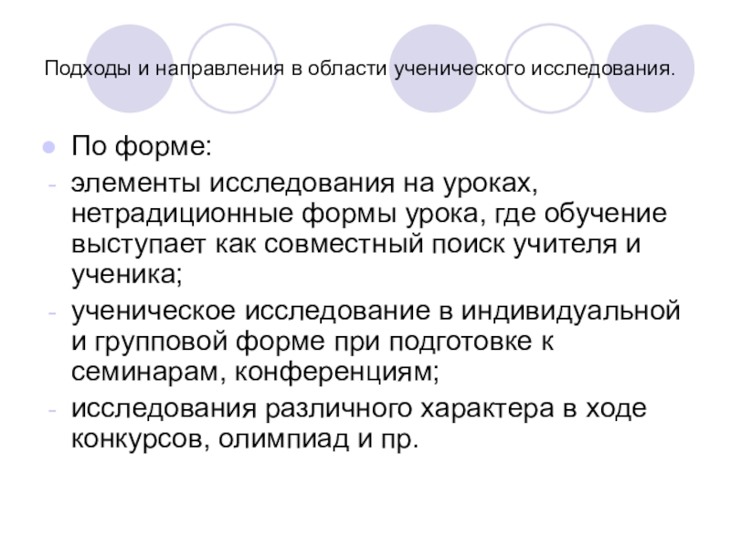 ученическое исследование в индивидуальной и групповой форме при подготовке к семинарам, конференциям;