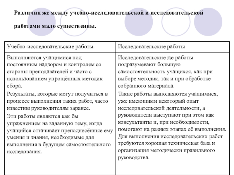 Слайд 5Различия же между учебно-исследовательской и исследовательской работами мало существенны.