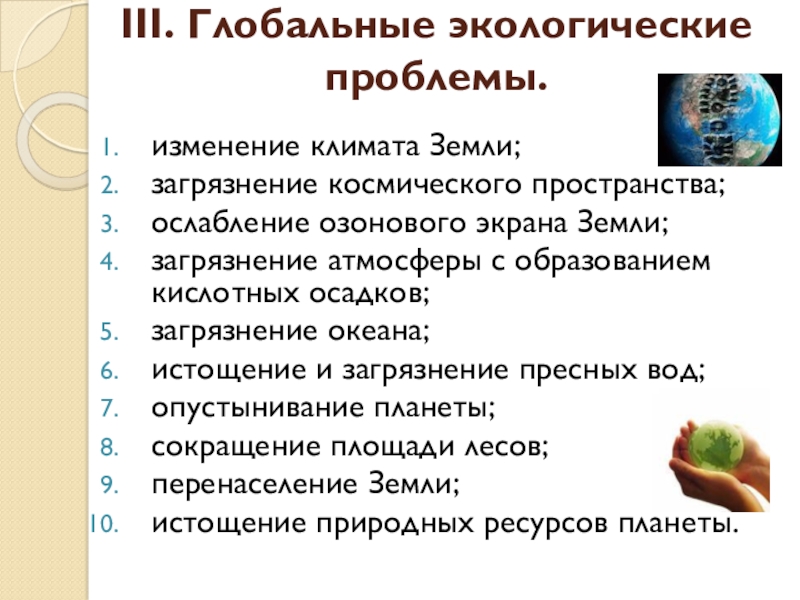 Слайд 15III. Глобальные экологические проблемы.