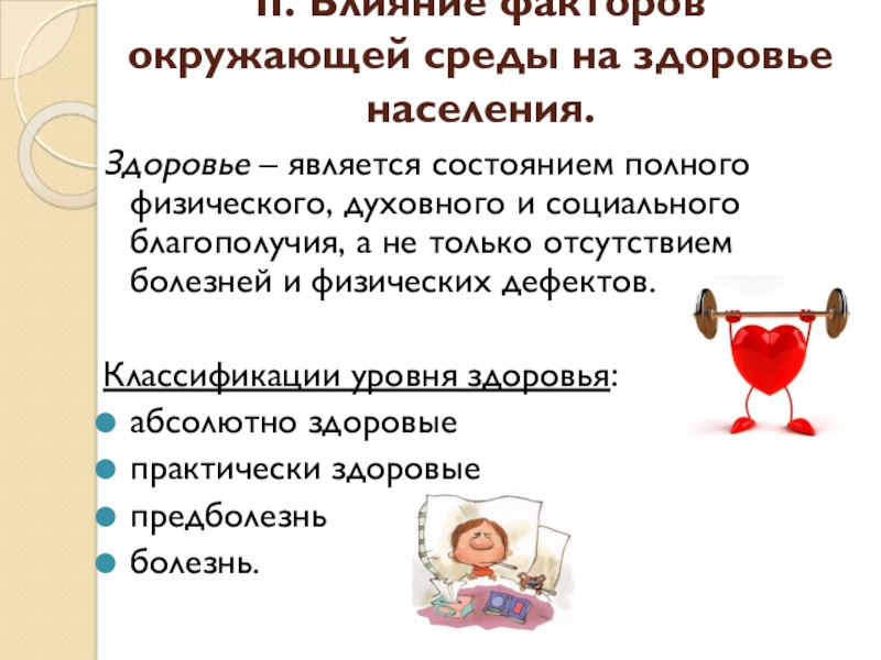 Слайд 11II. Влияние факторов окружающей среды на здоровье населения.