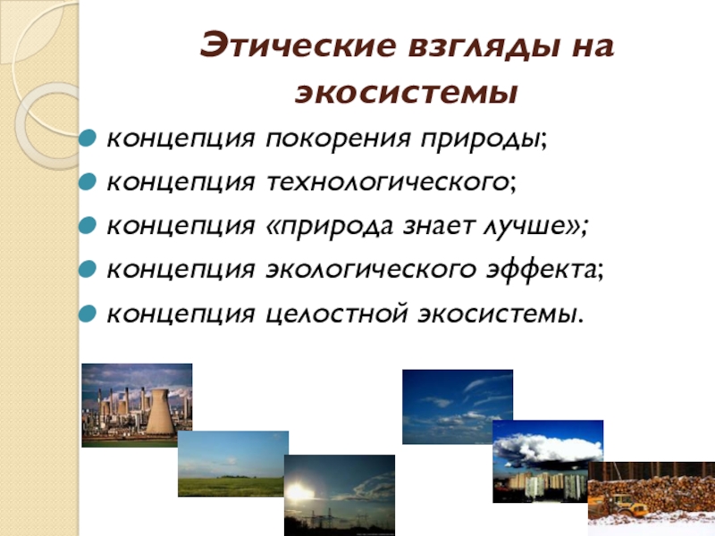 Слайд 10Этические взгляды на экосистемы