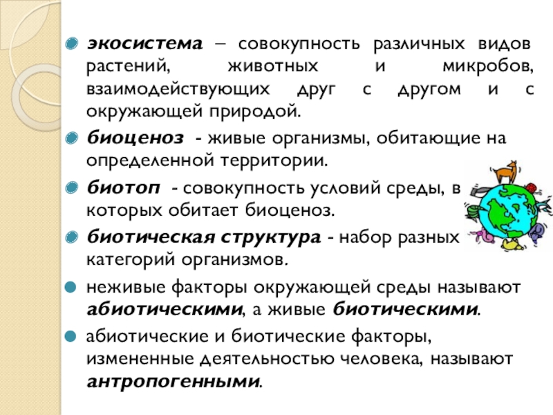 Слайд 5экосистема – совокупность различных видов растений, животных и микробов, взаимодействующих друг