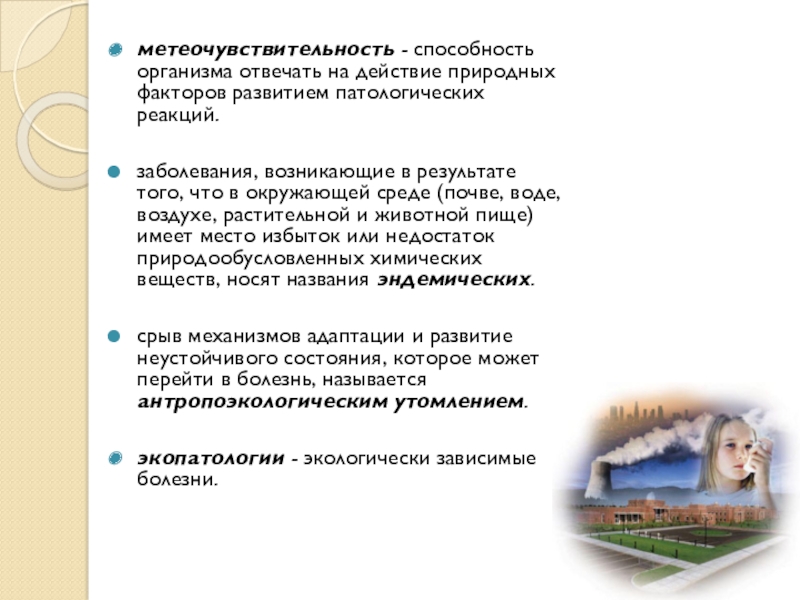 Слайд 14метеочувствительность - способность организма отвечать на действие природных факторов развитием патологических