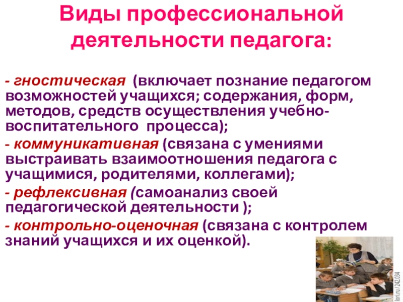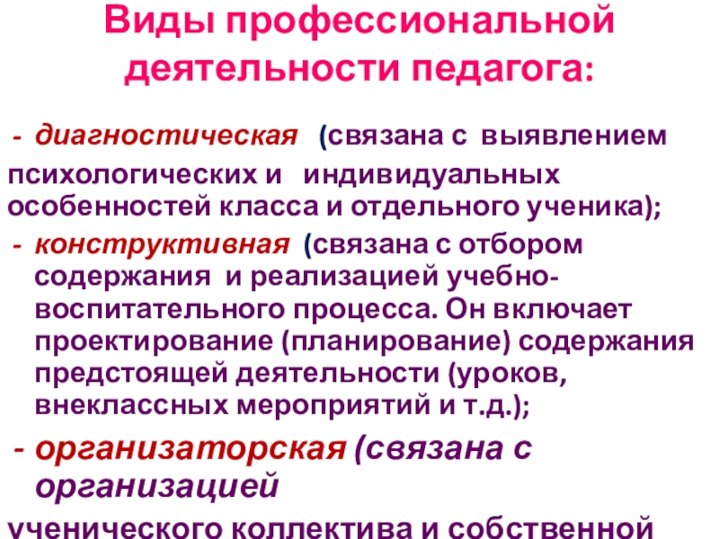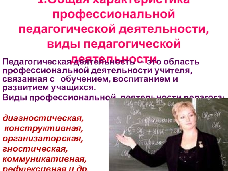 Слайд 41.Общая характеристика профессиональной педагогической деятельности, виды педагогической деятельности
