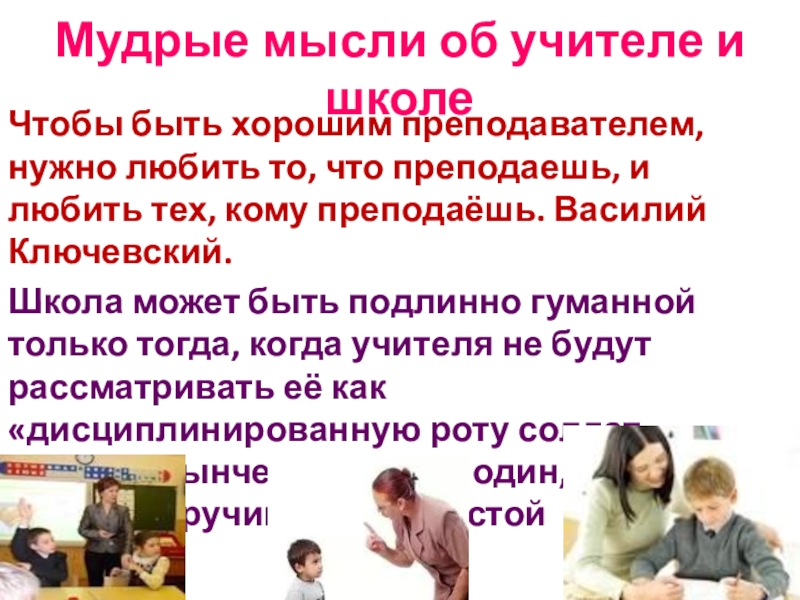 то, что преподаешь, и любить тех, кому преподаёшь. Василий Ключевский.