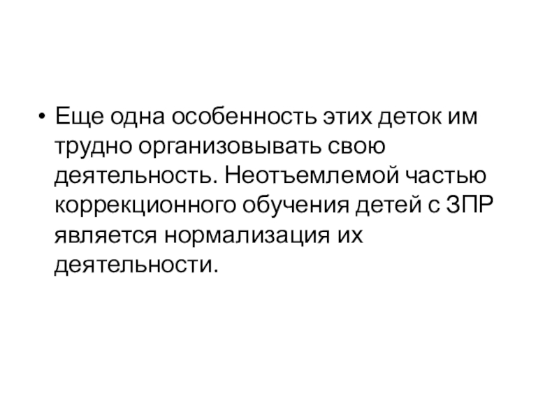 Слайд 5Еще одна особенность этих деток им трудно организовывать свою деятельность. Неотъемлемой