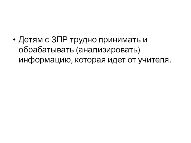 Слайд 3Детям с ЗПР трудно принимать и обрабатывать (анализировать) информацию, которая идет