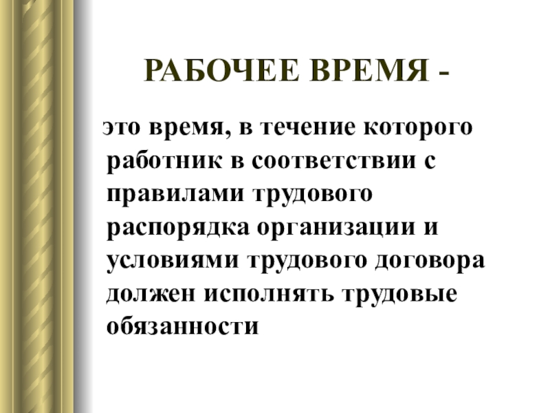Слайд 9РАБОЧЕЕ ВРЕМЯ -