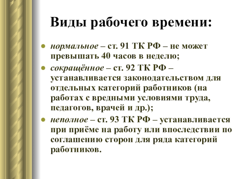 Слайд 11Виды рабочего времени:
