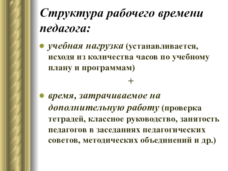 Слайд 12Структура рабочего времени педагога: