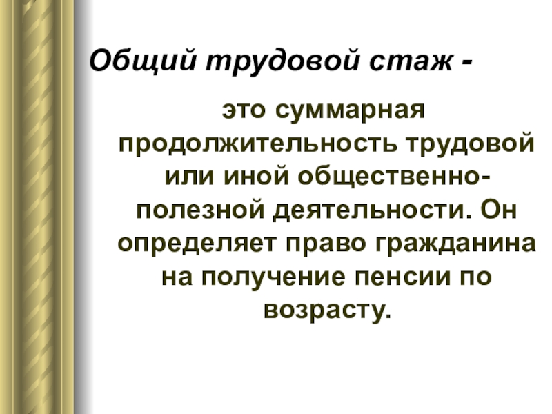 Слайд 27Общий трудовой стаж -