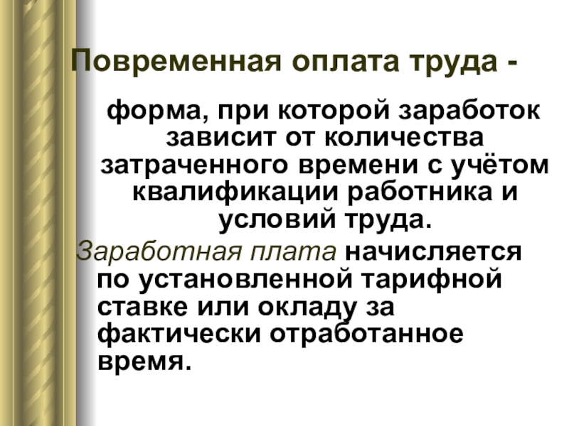 повременная (труд оплачивается в зависимости от затраченного времени)