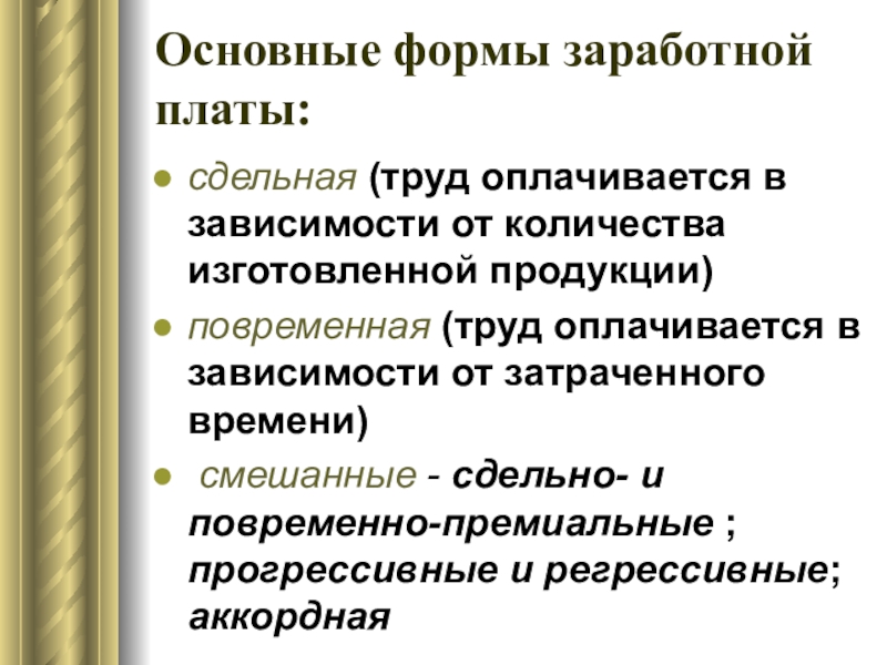 Слайд 32Основные формы заработной платы: