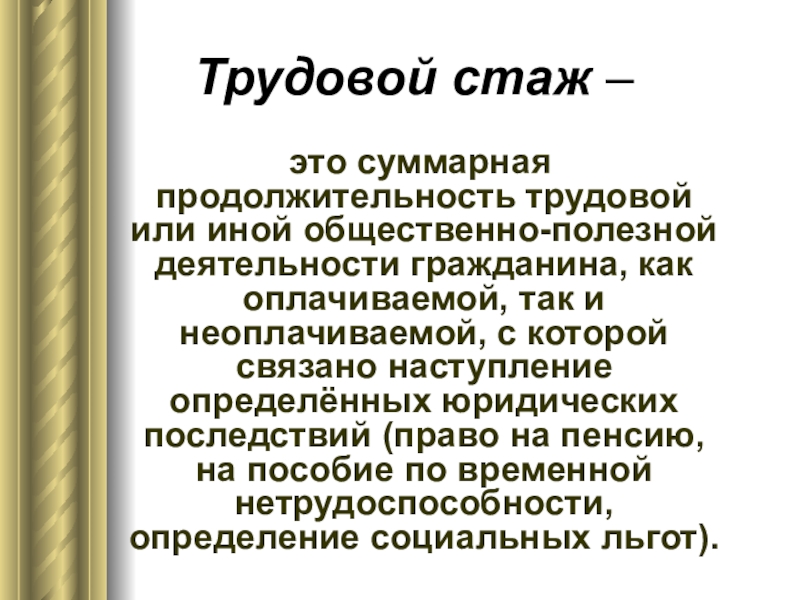 Слайд 26Трудовой стаж –