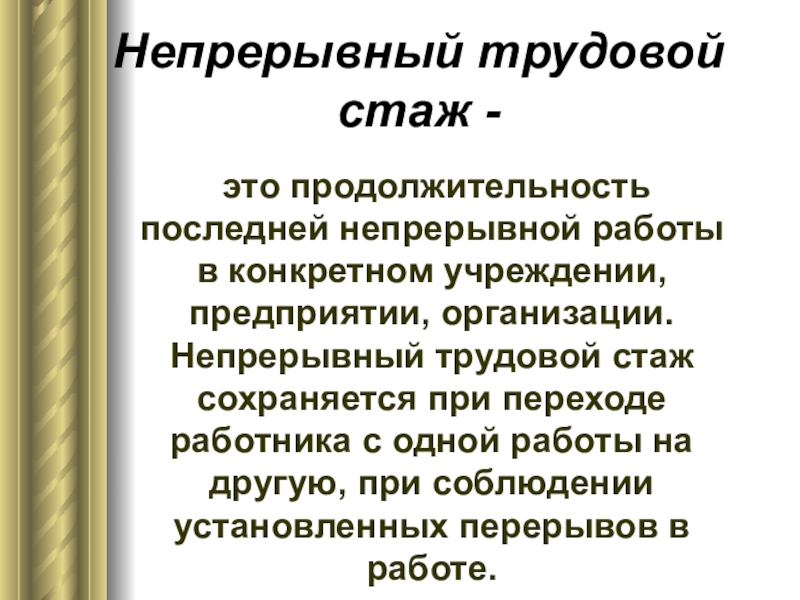 Слайд 28Непрерывный трудовой стаж -